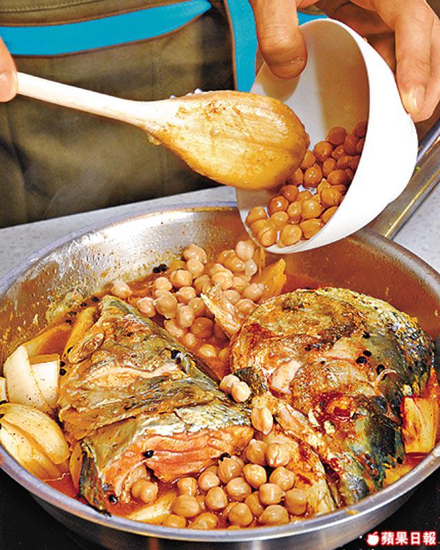 豆類高鈣但味寡,以低脂奶自製咖喱汁,配魚骨多的三文魚頭,整道菜便惹味又高鈣,好主意!