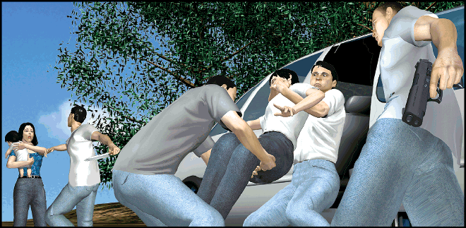 案中37歲女事主阿鳳,半月前剛由重慶到廣州,並暫住在同鄉女友阿萍在白雲區京溪村家中。前日清晨6時,阿鳳陪同手抱一歲多女嬰的阿萍擬往醫院看病,她們在離京溪派出所數十米的路口等的士時,突遭四名持刀槍男子擄上一輛銀白色客貨車。阿萍的丈夫接報後,在45分鐘後趕到現場,並報警求助。