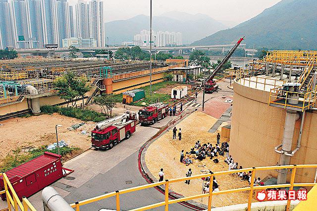 昨日一眾男演員繼續拍外景,到沙田馬料水污水處理廠拍攝一幕災難性的大爆炸場面,無綫出動近半百臨記、四部消防車及兩部救護車,並有多名正牌消防員在場監督。