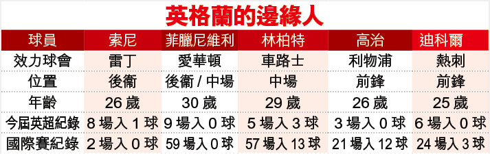 在06年世盃決賽周,林柏特及高治都是英格蘭國家隊的正選,但一年多之後,他們竟同淪為國家隊的邊緣人。