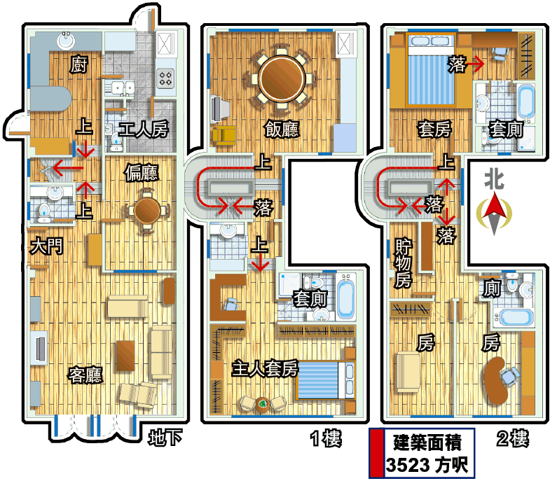 面積:3523方呎;另花園1313方呎、車房1333方呎及天台790方呎
