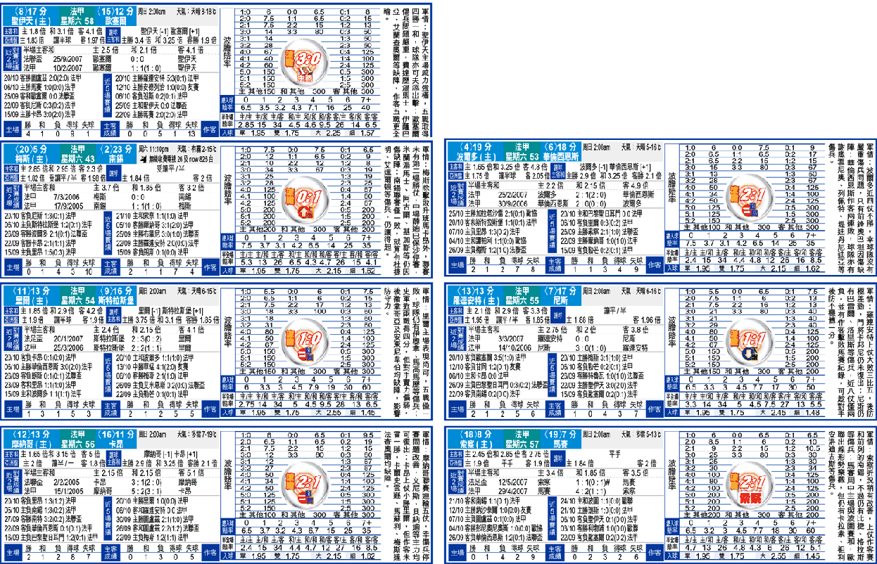 同日推介另一場讓球盤,索察主場對馬賽,主隊近況稍有好轉,攻力亦有保證;相反,馬賽周中與波圖激戰歐聯比賽,耗力甚多;加上卡林施安尼、拿斯尼、卡拉素等主力料缺陣,平手盤宜取主隊。