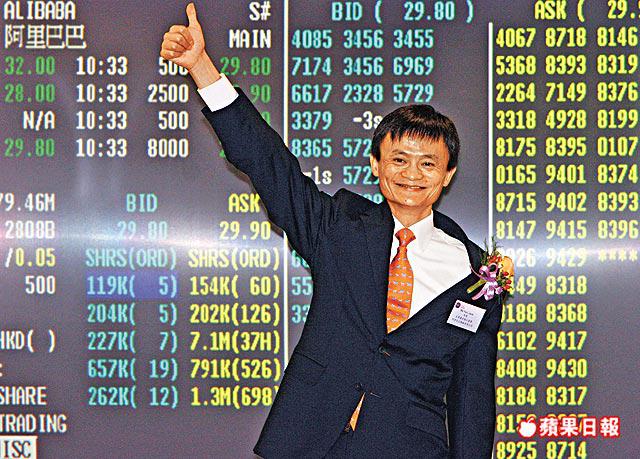 阿里巴巴昨日甫開市,股價已彈升至30元水平,較招股價升1.22倍;曾跌至28元低位,但以貼近全日最高位39.95元收市,收報39.5元;全日成交高達174.73億元居首。
