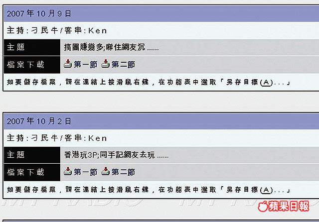 本報昨日進入有關網站時發現,該節目內容包括「刁民牛網聚;網友深圳溝女記」、「香港玩3P;同手記網友去玩」等,節目本年3月啓播,至今已播出26集。