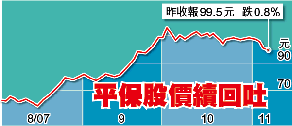 作為平保主要股東的滙控(005),旗下滙豐證券昨天調低平保的投資評級,由「中性」調低至「減持」,原因是平保近期的利好消息已反映在股價內,惟公司的基本因素仍然良好,因此維持目標價91港元。平保H股昨收報99.5元,跌0.8%。