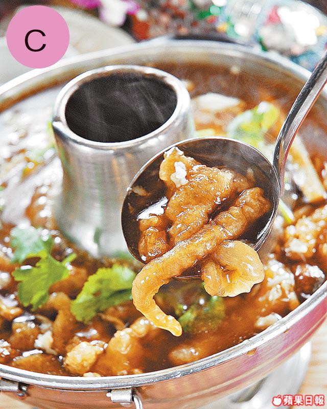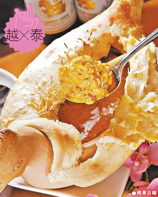 羊膝肉質特別鮮嫩,為了去除羊羶味,大廚加入了紅酒、芹菜、冰糖等燜1小時,再以泰國小南瓜帶出甜味,味道極富層次,先甜後辣,辣味越嗒越濃。