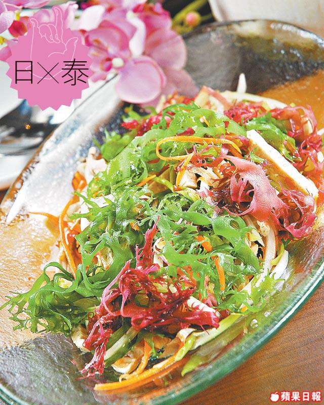 用日本海帶、洋葱、雞肉及青瓜等加入秘製海鮮汁拌成,日本海帶薄身,爽脆,吃的時候口感一流。而其他拌菜酸辣可口,雞絲及扎肉都因海鮮汁而帶出肉味。