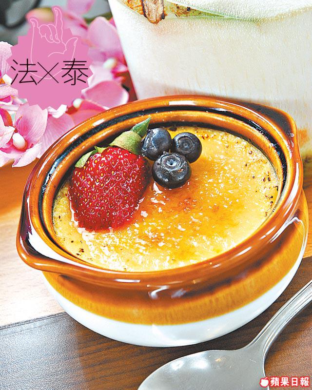 將檸檬葉、人參薑、香茅等加入蛋中煮後再放焦糖焗,燉蛋有淡淡的香茅及檸檬葉味,口感很滑,吃下口有陣類似薄荷味的感覺。