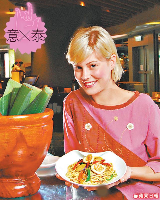用指天椒磨粉煮成青咖喱汁,加上蝦、魷魚及青口與意大利麵同炒。海鮮鮮味十足,肉質甜美。而意大利麵吸收了青咖喱的美味,吃下去,別有風味,不辣。