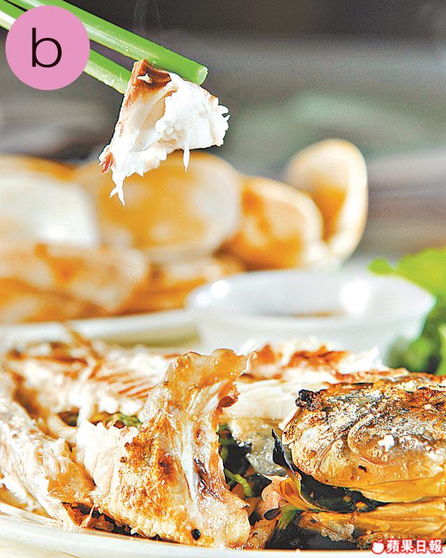鯽魚皮薄肉白,燒時在魚身撒上鹽巴,令魚保持鮮味、嫩滑,蘸少許秘製的醬油汁,肉味會更濃。秘製醬汁包括葱、薑茸及泰國白豉油等。