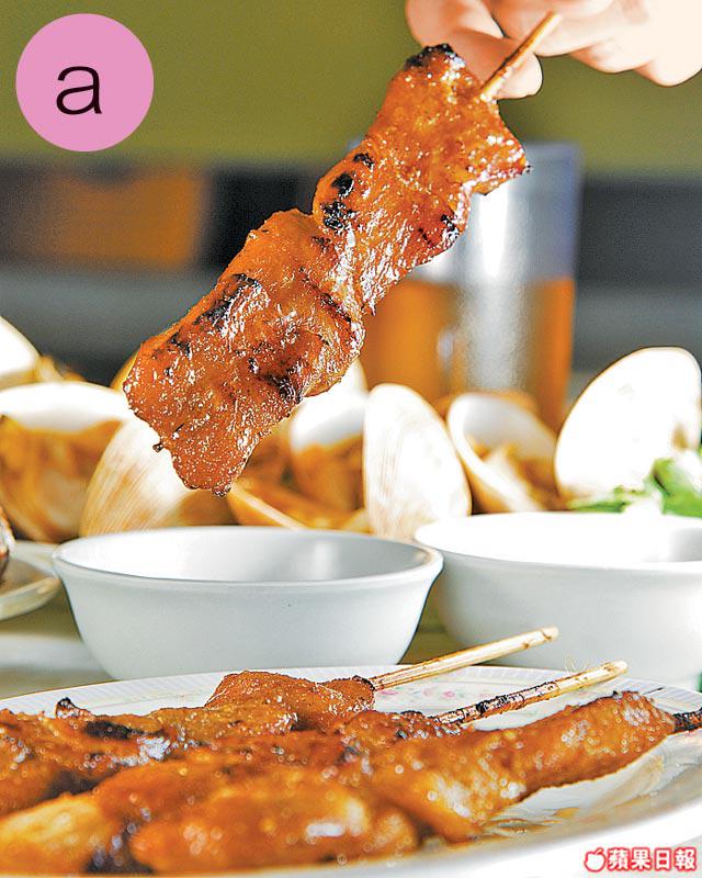 將豬頸肉以薑茸、蒜茸、泰國白豉油等秘製香料汁先醃後燒,豬頸肉肉質爽口,咀嚼時肉汁滿口,而香料中的胡椒味及蒜茸令肉更有味道。