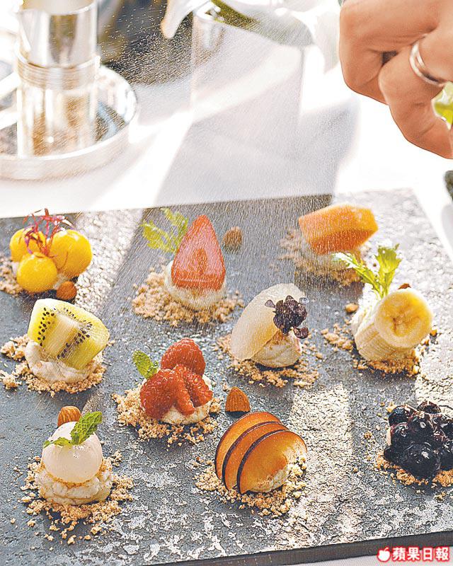 新鮮水果配以香蕉及椰子製成的水果茸,口感如薯茸般香滑。噴上蜜糖、橙等製成的BircherTrifle,味更鮮。