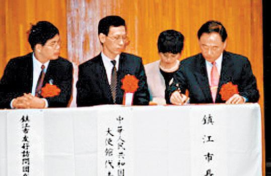 王慶前(左二)在1998曾訪日,參加中國鎮江市與日本倉敷市締結友好城市的活動。