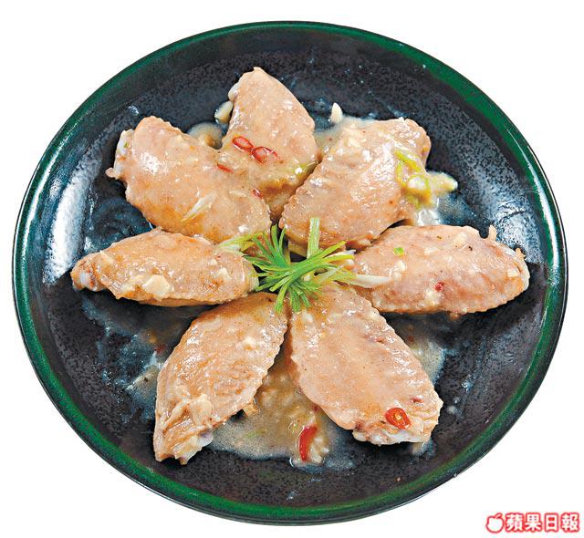 2.燒熱油,爆香蒜茸、薑片及葱,雞翼回鑊,再倒入調味,用中火煮至入味便可。