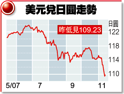 日圓兌每美元昨曾升至109.23,但無以為繼,除了息率維持低企外,英國《金融時報》專訪引述首相福田康夫稱,日圓近日升勢過急,投資者須加倍小心。報道亦打擊了日圓的買氣。