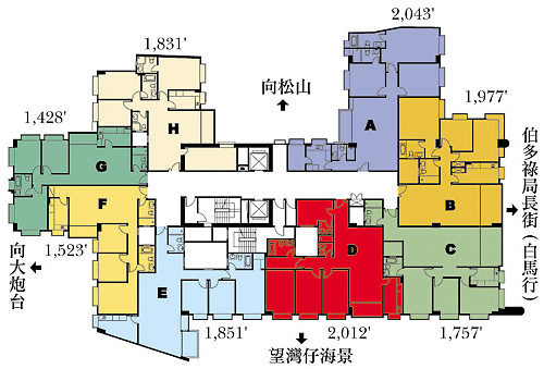 單位間隔:3房、4房(套房及工人套房)、4房(兩套房及工人套房)