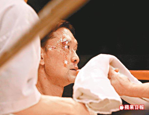 周比利在開賽初段已被對手打破眼角(圖),血流披面的他最終仍打足5回合,但3位裁判最終以2:1判阿卡倫勝。