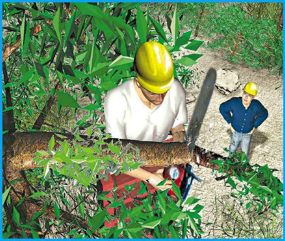 【本報訊】黃大仙上邨公屋重建地盤昨晨發生罕見意外,一名地盤工人在山坡鋸樹時失重心,連同鋸斷樹枝從4米高墮地,前額撞向地面一塊插着鋼筋的石屎,鋼筋直插入其額頭,深入兩厘米。而斷枝則擊傷一名管工,消防到場將鋼筋剪斷,工人連同插入額頭鋼筋及輕傷管工一併送院。