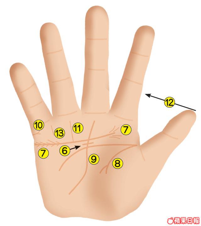 這是先天掌中所沒有的,代表非常介意別人對她的睇法,並開始對神秘的事物感到興趣,相學中稱為神秘十字紋,對玄學術數之類特別有心得。