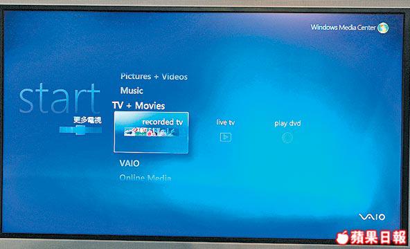 講到最強之處,首選係「入屋」裝置!稱得上「TVSidePC」,就唔止齋講家居擺設咁簡單。其實,TP1G毋須接駁任何電腦芒一樣用得,只要經HDMI輸出至高清電視,就可顯示出1080P畫面;另外,TP1G仲提供娛樂專用嘅WindowsMediaCenter,只要㩒吓遙控器上嘅WindowsIcon,電視畫面即轉至多媒體播放介面,可播放及燒錄DVD、睇相、聽歌,甚至加多$100優惠價購買TVTurner,就可以預錄電視節目!比較可惜係,雖然TP1G提供高清輸出,但唔支援Blu-ray制式,睇片少咗樂趣。