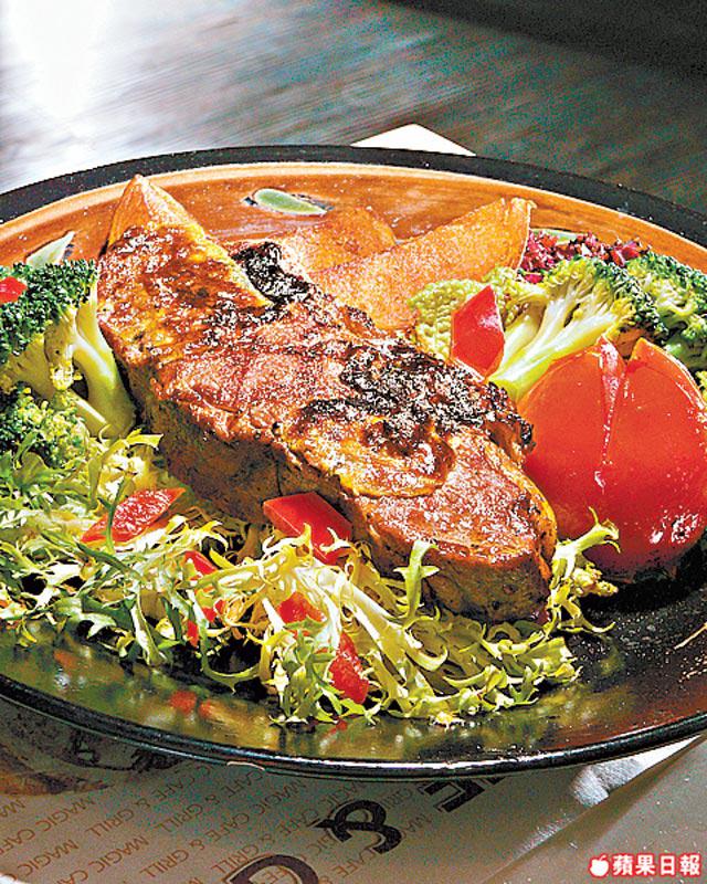 將西冷扒用紅酒、香葉等醃製,燒時塗上以銀魚柳、百里香等調配而成的牛油醬,牛油的香帶出肉的鮮和鹹!