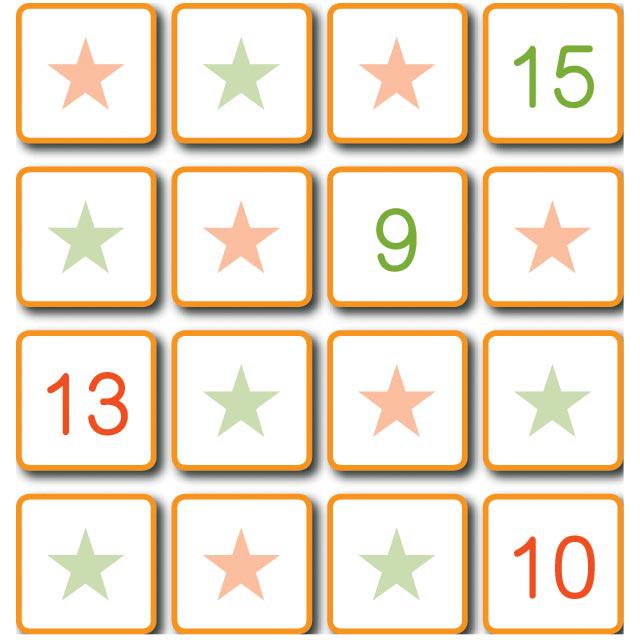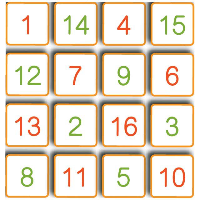 芭莉娜念出咒語時被迷陣阻礙,她要在方陣填上1至16的數字,使直、橫、斜行4個數字相加都等於34,便可衝出迷陣。