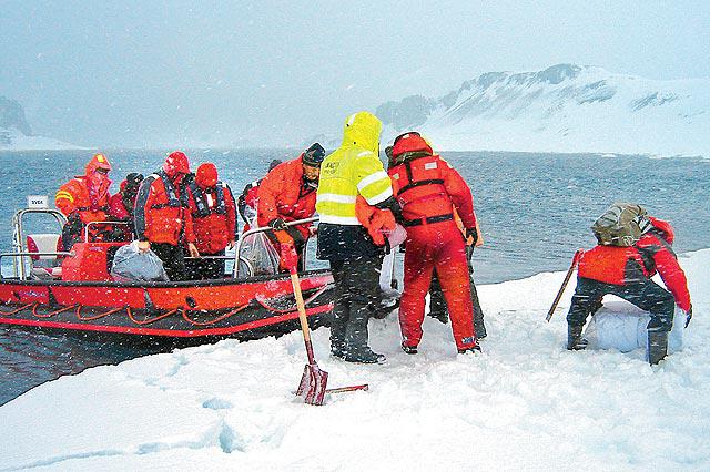 乘客帶了足夠一周的食物,分8至20人為一組上救生艇,在滿佈浮冰的海面漂浮,看着郵輪緩緩下沉,心裏只有寒意。偌大的南極冰洋,當時氣溫只有-5℃,波浪濕身令人又濕又冷,乘客都躲入類似防水睡袋的救生袋,互相摟抱取暖。