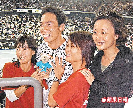 剛當選無綫「雙料視帝」的陳豪(左二),昨亦有捧場;原來這位在澳洲長大的型男,從小打網球打到大,但就首次親睹兩代「1哥」比賽。陳豪說:「他們兩個在黃金時期都好出色,很難說鍾意邊個,兩個都勁。」採訪期間,陳豪亦招來不少影迷要求合照。