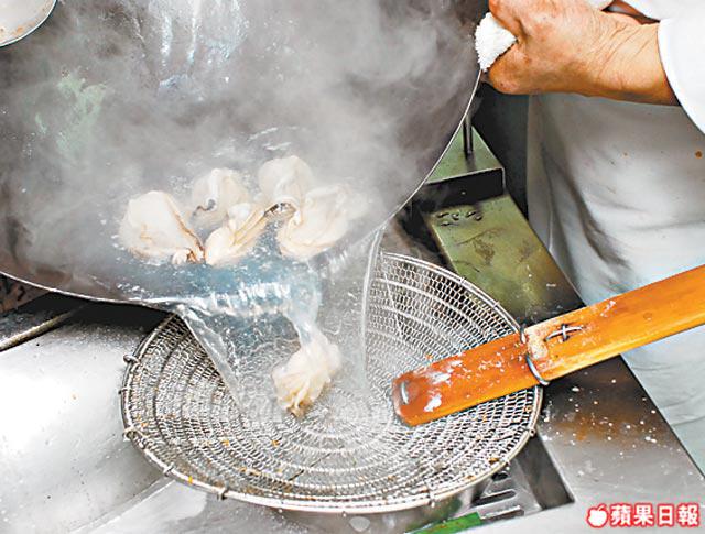1.先將生蠔汆水,瀝亁後撲上生粉,放滾油炸至金黃色,撈起備用。