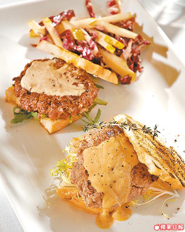 一邊是羊肉跟香草忌廉汁,另一邊是鴨肉跟鵝肝忌廉汁,有兩種不同食感的漢堡,香草忌廉汁令羊肉完全不羶,鵝肝汁令鴨肉相得益彰。