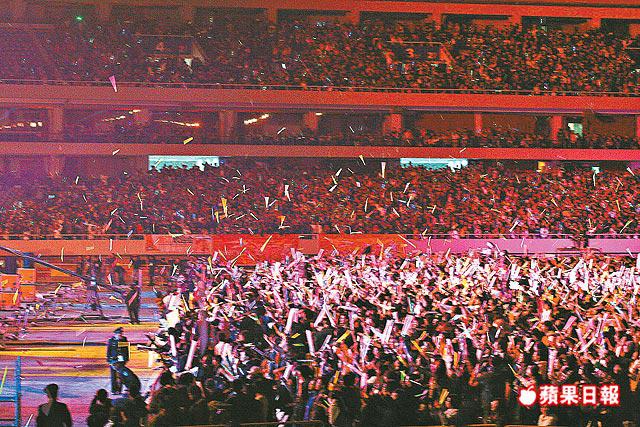 周杰倫前晚在上海體育場展開「世界巡迴演唱會」,吸引了56,000fans捧場,座無虛席。場館保安人員為防有人在演唱會進行期間掟螢光棒,在觀眾進場時把他們手持的螢光棒沒收,豈料觀眾全都把螢光棒藏入袋中,保安人員又沒有搜查袋子,因此出現萬棒橫飛的場面。
