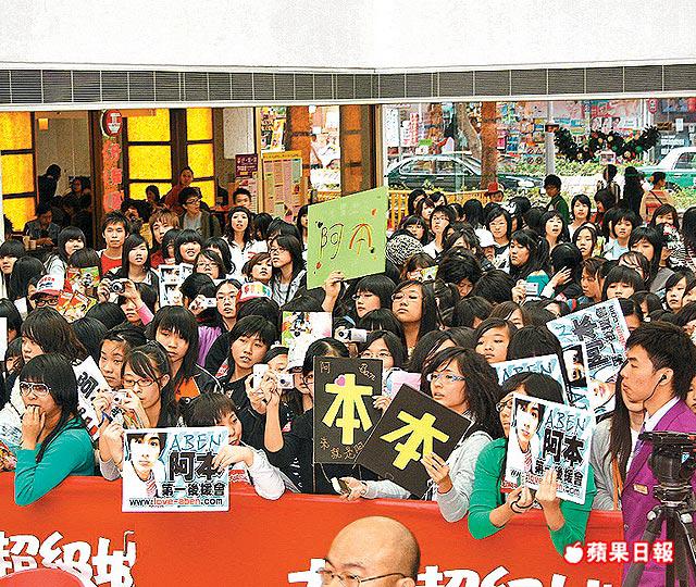 台灣人氣組合模范棒棒堂的成員阿本,昨日在大埔的聖誕節亮燈儀式上與200位fans見面,同場以性感聖誕女郎造型出現的動漫Maggie酥胸半露,春光明媚,嚇得阿本收起俏皮,僵硬立正,只能以目不斜視、臉紅掩面來迴避。