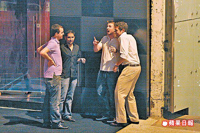 二人在街頭纏綿約6分鐘後,外籍女伴便獨自步往對面的Dragon-i夜店,似是擔任公關職務的她在場外接待嘉賓,留在原地等候的基斯則與三名外籍男友人閒聊,但聊了一會兒友人便告撤退,剩基斯一人靠在牆邊擔天望地,約15分鐘後,外籍女郎步出Dragon-i,基斯一見女方露面馬上展現笑容,連忙拖着她邊傾偈邊截的士,齊齊上車趕下場。