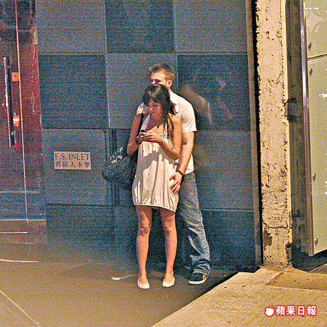 昨日凌晨約2時,打扮隨意的基斯偕該名外籍女伴齊到中環夜店Qube,會合陸續到場的近10名外籍友人一同消遣,未料基斯蒲吧滾水淥腳,未及半小時已拖外籍女伴離開,甫出街即攬實她,其間外籍女伴靠在他身上打手機短訊,基斯則摸她大腿,未幾她轉身躲在基斯懷裏,他也即時抱住女伴的腰肢,再摸她屁股,面露嬌羞的女方也表現受落。