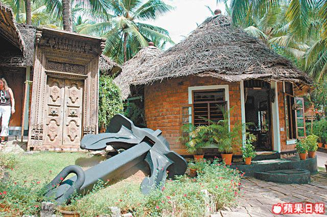 清晨我在村子裏散步,抬起頭,只見有人正在椰子樹上採椰子,椰子轟轟轟的掉滿地,把小路都攔下了。一顆椰子,椰子肉可以下菜、榨汁、作椰子油不說,將椰殼磨成絲,弄軟後還可織成繩子、編網,椰子葉編成屏風,南印度Backwater上大搖大擺的Kumarakom遊船,甚至連我們做Ayurveda古法按摩的房間都用椰子葉編成。