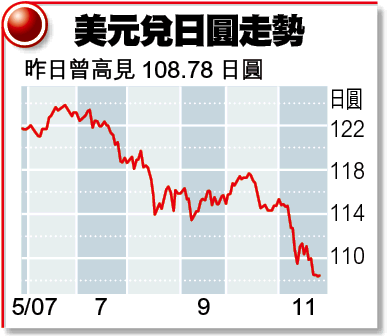美股上周五因感恩節零售銷情理想而急升逾180點,亞太股市和歐洲股市跟隨造好,刺激套息交易重現,高息貨幣紛紛重拾升軌,如澳元便連升3個交易日,昨日最高見0.8869美元,反而日圓兌每美元則退至最低108.78。其後《日本經濟新聞》報道,指管理中國2000億美元外滙儲備的中國投資公司有意投資於日股,日圓趁機收復部份失地,但中投副總經理汪建熙稱,公司的戰略資產配置方案尚在制訂中,目前還談不上針對任何市場,其言論中斷了日圓的反彈勢頭。