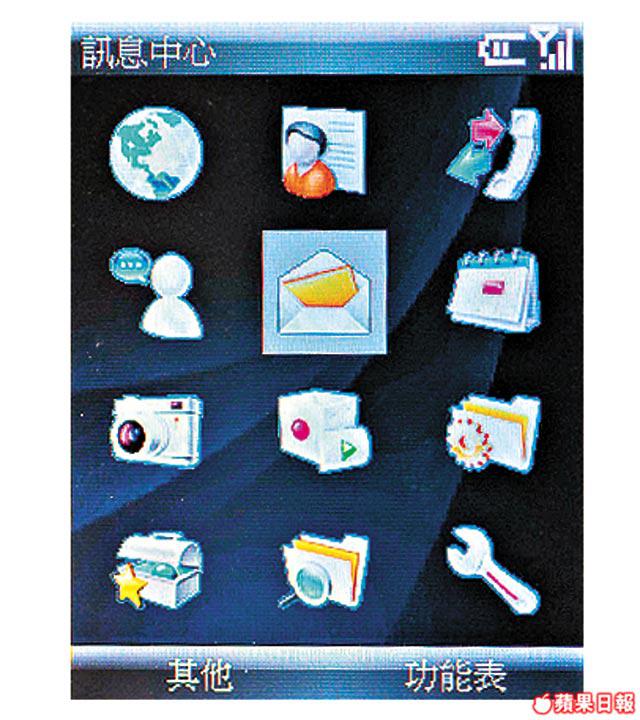 功能:200萬像素鏡頭、MPEG4攝錄、MP3鈴聲、SMS、MMS、IM