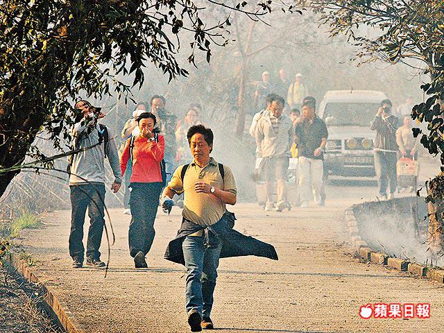 行山人士鄭小姐稱,昨晨她們由青山起步,「行到菠蘿山見到火光熊熊,即刻兜路去番山頂,見到好多人響度等」,其後消防員協助他們落山,兩邊仍非常大煙。蔡先生亦指,山火最近只有10多米:「我都唔係好驚,掉頭走好快離開險境。」由於火勢不斷蔓延,昨晚6時被升為3級山林火。昨全港發生13宗山火,其中10宗在新界。