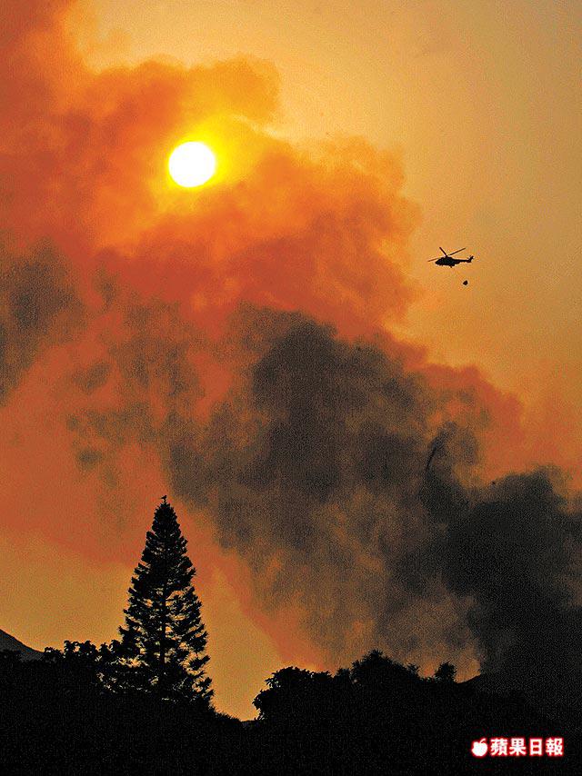 【本報訊】昨日紅色火警危險警告下,屯門菠蘿山發生山火,由於火勢猛烈及向周圍蔓延,消防處於傍晚將山火升為3級,消防員增援出動近100人撲救。其間,有30多名行山人士被山火圍困,其中4人要由飛行服務隊直升機協助救出。至今日凌晨山火仍未救熄。