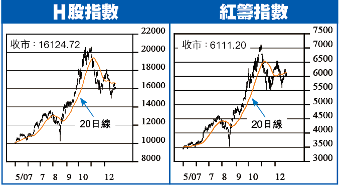技術上,短期仍在鞏固區,在20日線之下炒賣,若內地股市再次調整,H股期指有機會考驗15700至15800支持區。