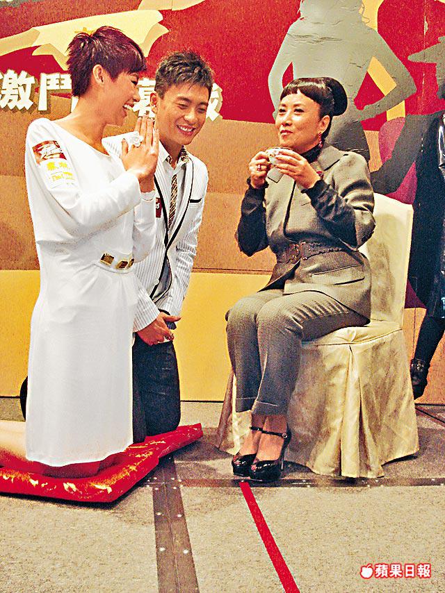 汪明荃昨日發揮野蠻奶奶本色為新劇宣傳,玩遊戲時用茅招,又要劇中扮演其孝順仔的黃宗澤幫拖,令她更顯威風八面。黃宗澤和胡杏兒這一對也公開打情罵俏,二人跪地斟茶給阿姐時,阿姐乘勢做紅娘對二人說:「乖啲喇,三年抱兩,搵多啲錢買樓。」場面儼如娶新抱一樣。
