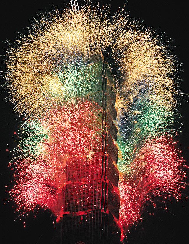 而在高雄出席跨年晚會的陳水扁總統昨晚10時宣佈:「台北101的Taiwan亮起來。」台北101大樓隨即亮起「Taiwan」字幕。雖然101大樓的煙花騷主題是「愛台灣」,不過,燃放的煙花都是大陸製造的。台灣《蘋果日報》/《聯合晚報》