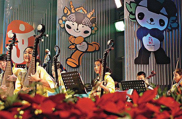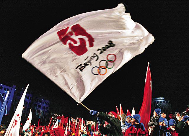 「喜迎奧運,祝福北京!」北京昨晚在中華世紀壇舉行迎接奧運年大型活動,除了放煙花和激光表演外,焦點是在凌晨零時,中華世紀鐘敲響了29下,宣告北京正式跨入2008奧運年。