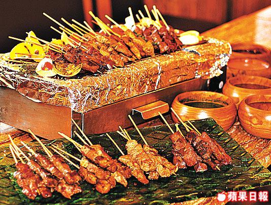 即場燒製的鹿肉、鴕鳥肉和羊柳串燒,惹味可口,配上大廚更精心調配的沙嗲汁、芫荽魚露汁、石榴汁等,酸酸甜甜更特別。