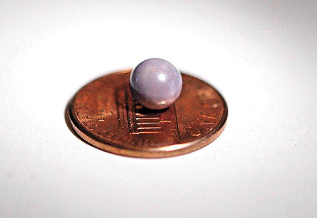 布羅克(GeorgeBrock)和太太上周五駕車去萊克沃思(LakeWorth)的海灘兜風,餓了就找家餐廳吃海鮮,叫了一打中蚌(middleneckclams)。吃到一半,忽覺咬到硬物,吐出來一看,卻是一粒滾圓亮麗的紫珍珠,有6毫米大。