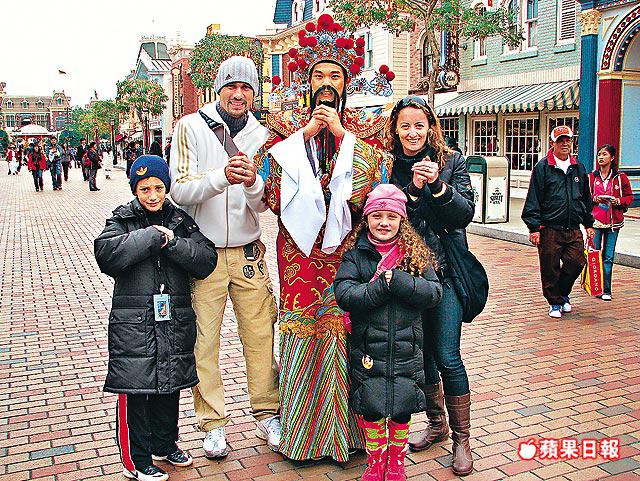 比高帶家人玩了多個機動遊戲,還在大街內遇上財神,自然要拍照留念,希望今年財源滾滾來:「Matheus最鍾意就是巴斯光年,玩完後還要買個巴斯光年公仔,而我則買了個米妮公仔給Maria作為新年禮物。雖然只玩了幾個鐘,但園內過年氣氛甚佳,能讓小朋友更認識中國新年。」