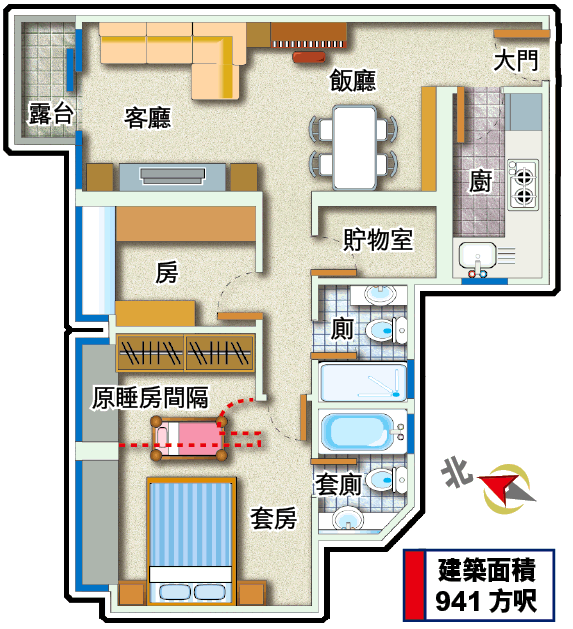 劉先生04年初以約300萬元購入單位自住,斥資約20萬元裝修,更換全屋地板、改裝客廁,並將細房拼入套房,「單位四正,個貯物房幾好用。拆房係想主人房好用啲,客廁原裝用料唔係好啱用,所以要換。」