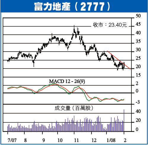 另外,沉寂已久的內地房地產股,上周五亦齊齊發力勁升,在50大上升榜中,內房股就佔咗8隻,而頭4隻升幅都超過一成,且全部都係大價股,例如富力地產(2777)大升15.2%、中國海外(688)升12.4%、合景泰富(1813)升11.6%同遠洋地產(3377)升11.4%。筆者在年初時的展望中,認為內房股係今年必買嘅股份,可趁低吸入,只要內地宏調一放緩,內房股就會飛升。