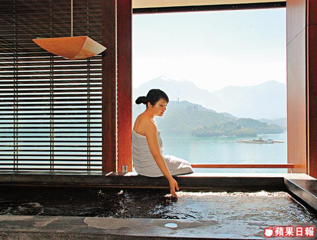 在這裏你的視線總與湖相連,餐廳、大堂……就連泳池同湖都融合在一起,拉成一個平面,海天一色,靜靜的水面倒影着四周的植物,可是不通氣的我,來個大跳躍,撲通一聲跳進泳池中,打擾了大家。但在水中欣賞日月潭,好像讓清凉湖水洗淨身心,感覺不一樣。儘管是冬天,這裏的天氣卻也不太冷,而且恒溫泳池保持29℃水溫,適合暢泳,要是你真的怕冷,到Spa大樓的三溫暖泡浴吧,同樣可一邊欣賞湖景,一邊洗白白或是浸在按摩池當中。然後,你會發現過去一年的霉氣早給暖和的水清洗得一亁二淨。