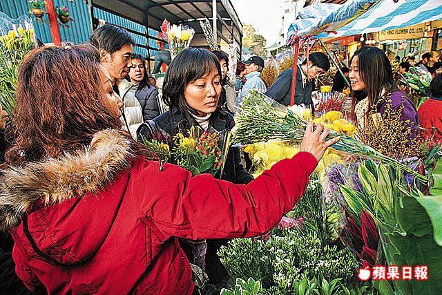 另外,賀年時花集散地旺角花墟昨日同樣擠滿選購年花的市民。有市民表示,花墟始終是「花多眼亂」種類繁多,花店引入不同外國品種,選購時有較多選擇。但整體花價較去過年時加價約兩成。